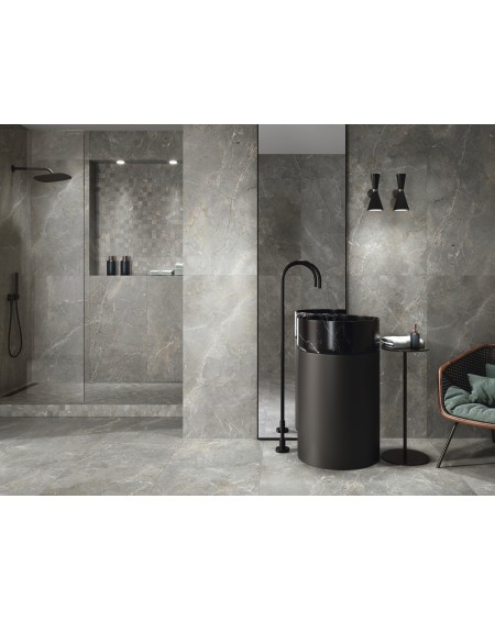 Pavimento porcelánico inspirado en el mármol que incorpora una serie de relieves y decorados que se complementan entre sí y crean un único diseño con continuidad, elegante y sofisticado. Se presenta en gran formato 120x120 cm y está disponible en cuatro tonalidades: grey, brown, cream y pearl.